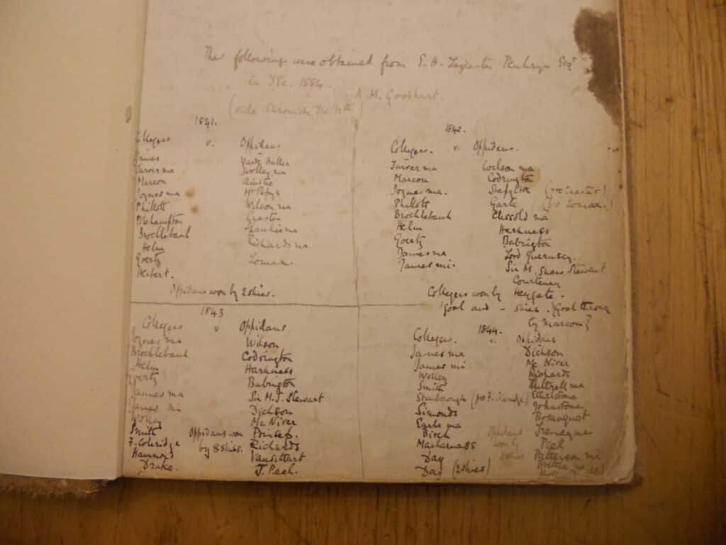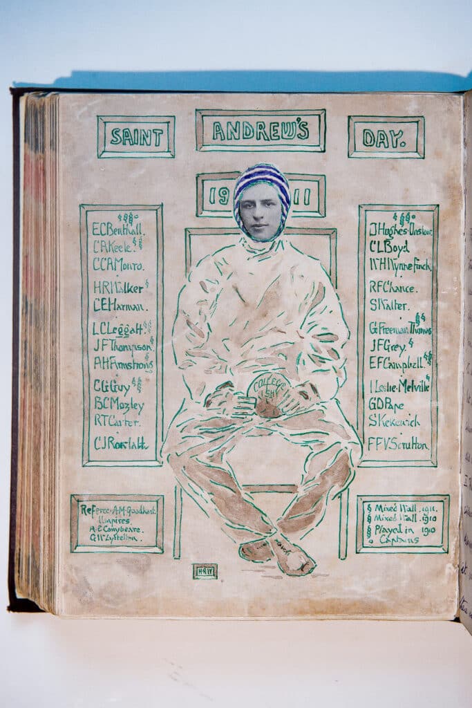 The Keeper of College Wall recorded the names of the players on each team and the final scores in the Keeper’s books. These lists were then beautifully decorated with illustrations. This gallery shows some examples of these.