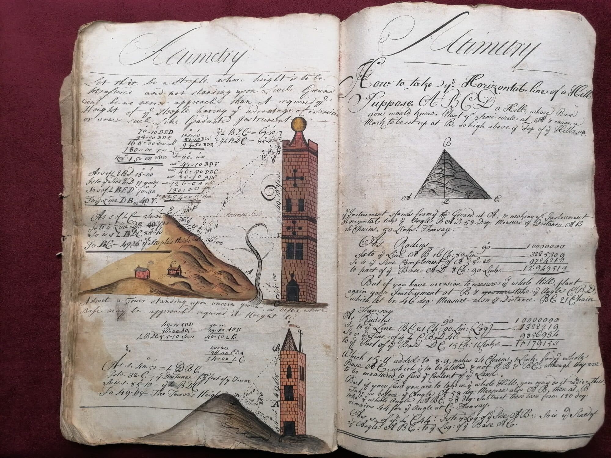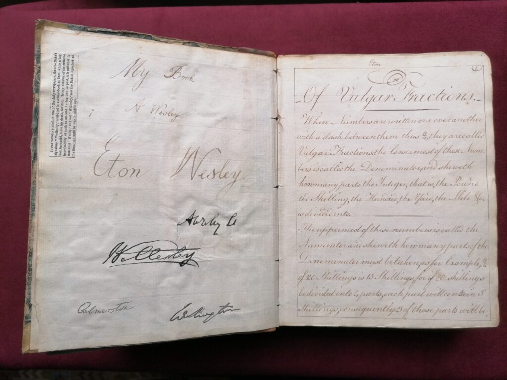 It is believed that also Arthur Wesley, the future Duke of Wellington, used a similar manuscript as a boy at Eton (1781-1784). This fat handbook includes mathematical rules and examples, geometry and a little trigonometry. The Duke signed his book as ‘Wesley’ as he was known at that time. He adopted the spelling ‘Wellesley’ only after 1797.